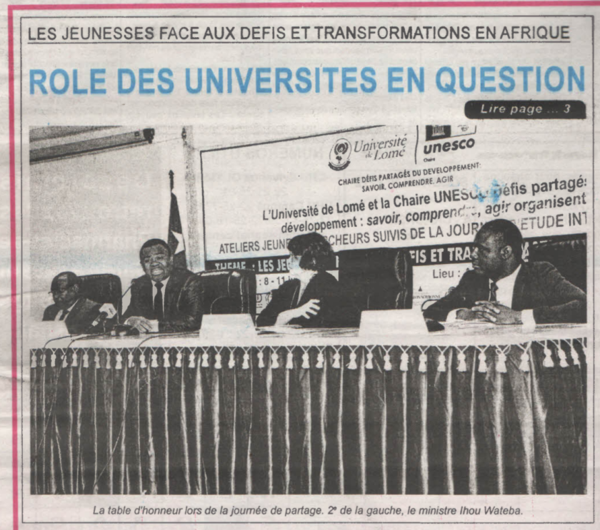L’université de Lomé a accueilli la Journée d’étude internationale le 10 juin 2022 consacrée à la problématique des Jeunesses face aux défis et transformations en Afrique. Cette journée d’étude a été précédée de deux journées d’ateliers jeunes chercheurs au cours desquels des doctorants ont pu présenter leurs projets de recherche, leurs terrains mais aussi affiner leurs compétences méthodologiques.