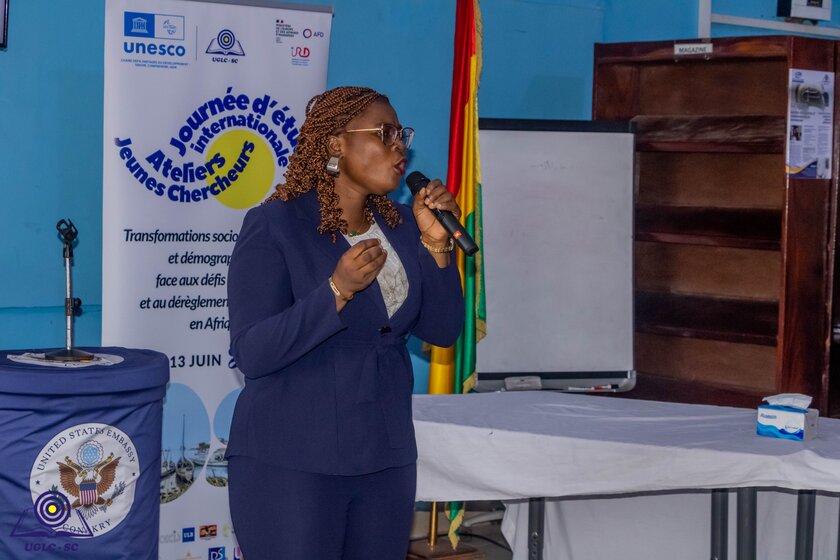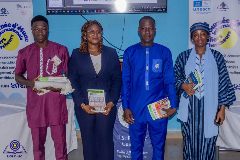 - Tiranké Touré, doctorante à l’UGLC-SC, remporte le Prix du public pour son discours Relation de communication entre les femmes enceintes et les médecins au centre de santé Mère et Enfant Bernard Kouchner de Kaloum.